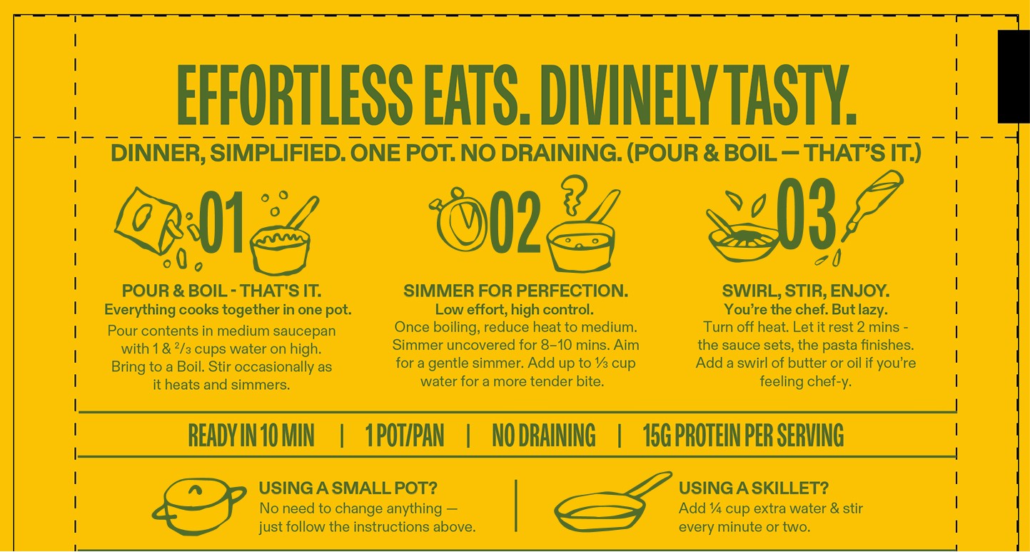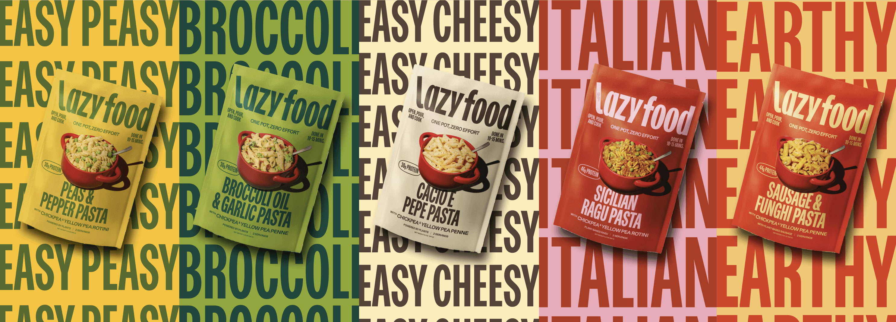 Lazy Food’s packaging embraces boldness with a punchy visual identity designed for instant shelf impact. Vibrant colors, drawn from each dish’s hero ingredient, pair with oversized typography to spotlight the meal’s core flavors.